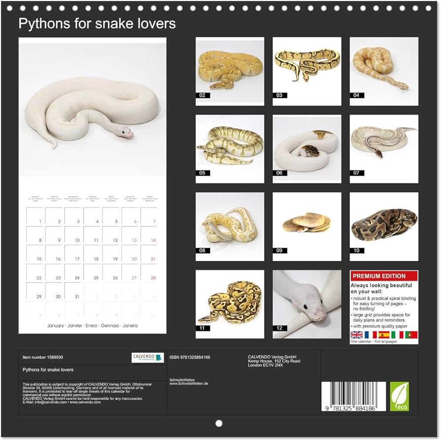 Amazon.com: Pythons for snake lovers (Wall Calendar 2024 12″ ร 12